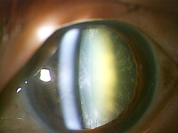 一番多いのは老人性の白内障ですが、早ければ40歳から発症し、80歳を超えるとほとんどの方に認められます。症状はかすみ目や視力低下、眩しさなどの症状が出てきます。
